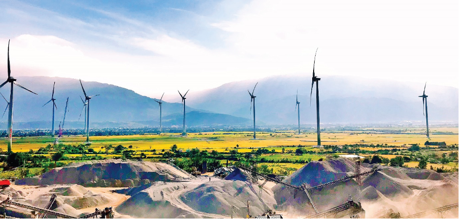 Nguyên liệu sản xuất VLXD bằng sa thạch: vôi Sơn Hải, Cà Ná, Mỹ Tường, Thái An, Cà Ná – trữ lượng 2,5 triệu tấn CaO; phụ gia đất sét, đá xây dựng.